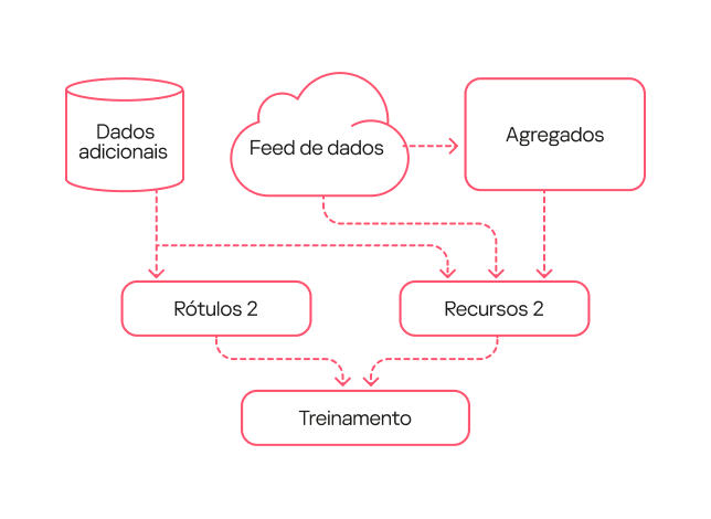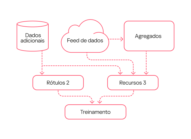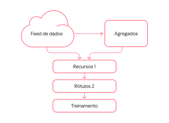Para a amostra de treinamento, utilizamos dados de carregamento de bibliotecas dinâmicas fornecidos por nossos sistemas internos de processamento automático, que lidam com milhões de arquivos diariamente, além de telemetria anonimizada, como a fornecida voluntariamente pelos usuários da Kaspersky por meio da Kaspersky Security Network.