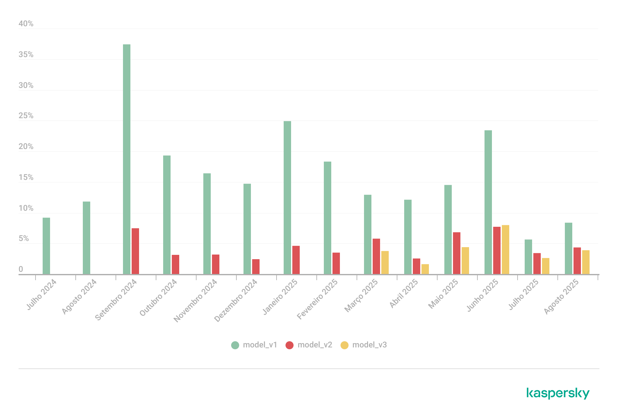 Taxa de falsos positivos entre os dados de saída do modelo, de julho de 2024 a agosto de 2025 (download)