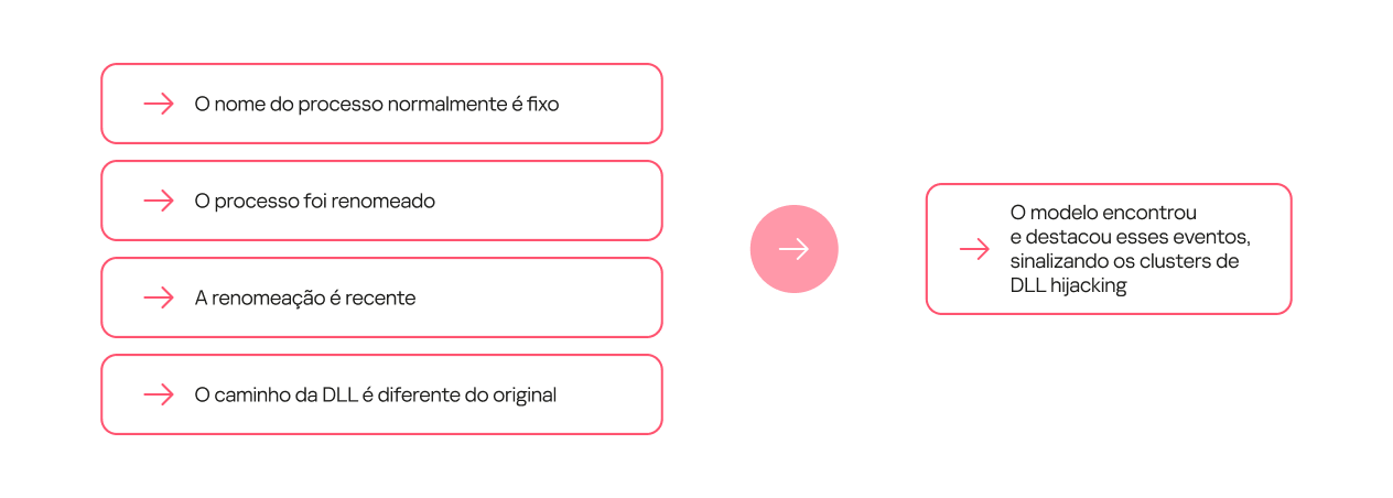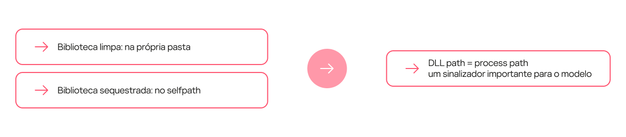Para determinar se poderíamos treinar um modelo para distinguir entre carregamentos de bibliotecas maliciosos e legítimos, primeiro era necessário definir um conjunto de características que indicassem com precisão um DLL hijacking. Identificamos as seguintes características principais: