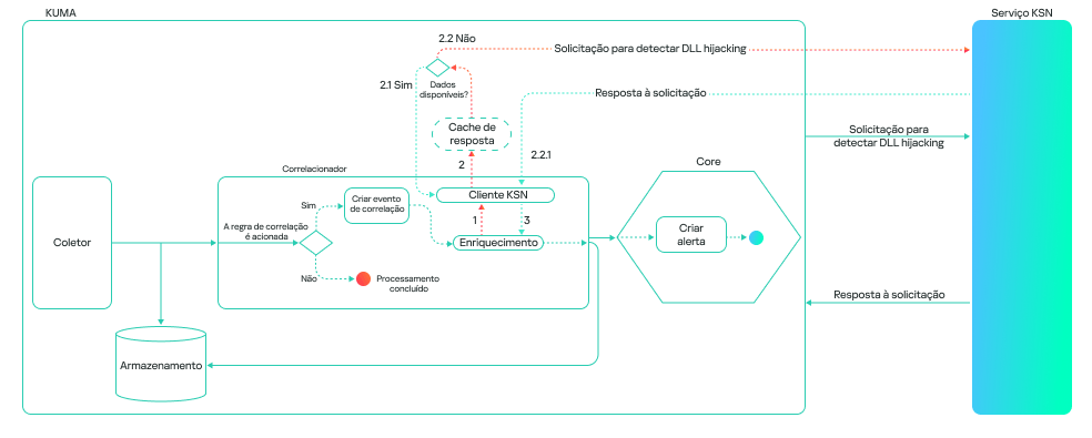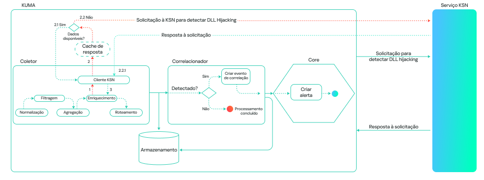 A operação do modelo geralmente se resume a uma verificação passo a passo de todas as bibliotecas DLL carregadas por processos no sistema, seguida pela validação na nuvem da Kaspersky Security Network (KSN). Essa abordagem permite que atributos locais (caminho, nome do processo e hashes de arquivo) sejam combinados com uma base de conhecimento global e indicadores comportamentais, o que gera uma melhora significativa da qualidade da detecção e reduz a probabilidade de falsos positivos.
