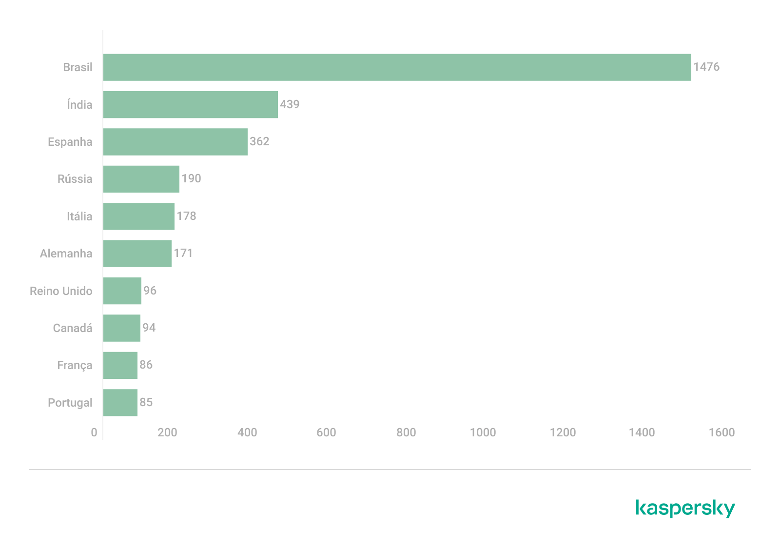 Os 10 principais países pelo número de usuários que encontraram o Efimer (download)