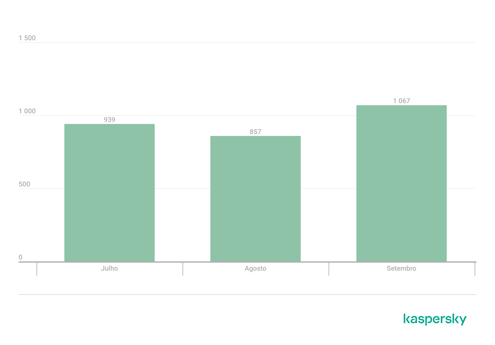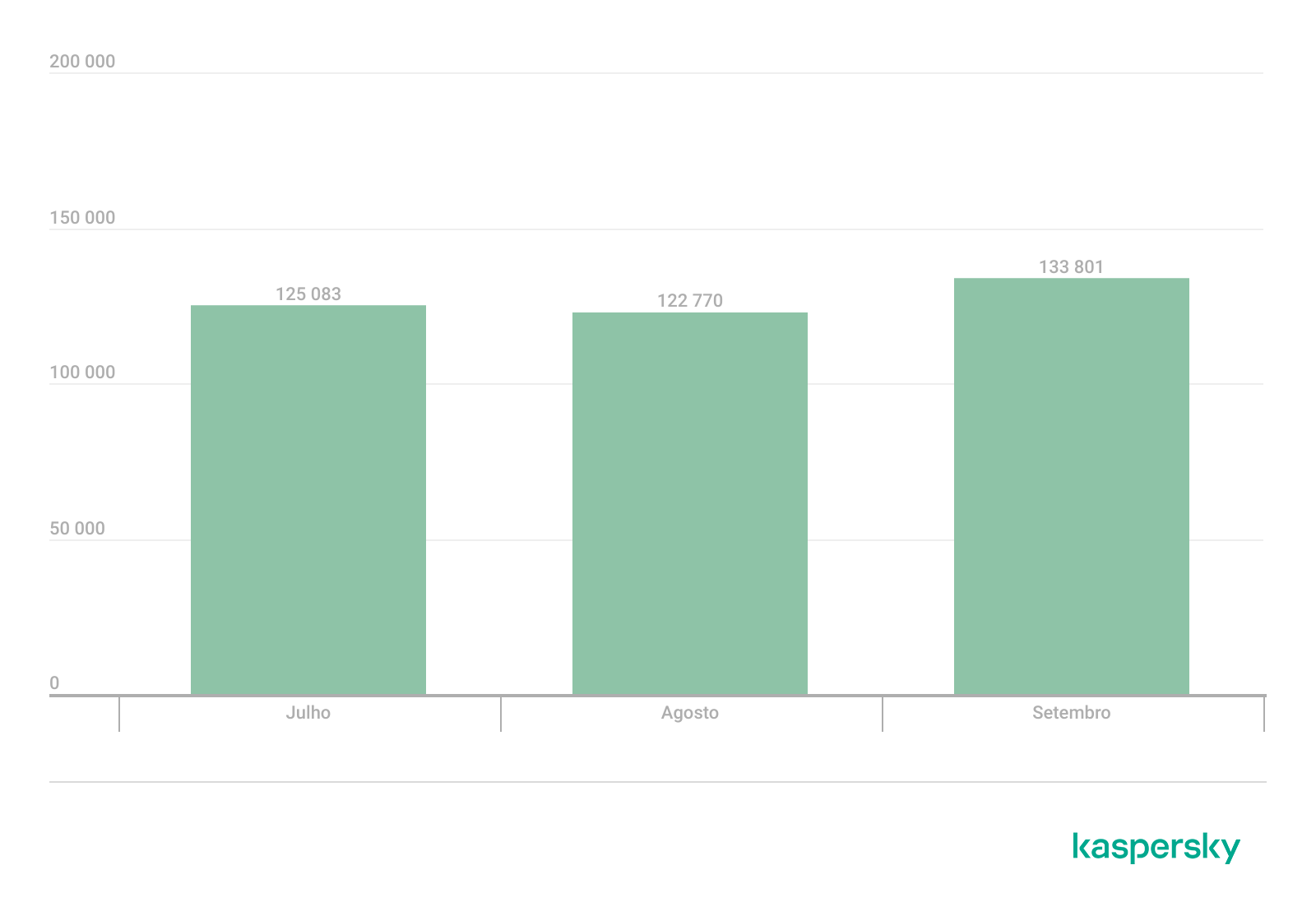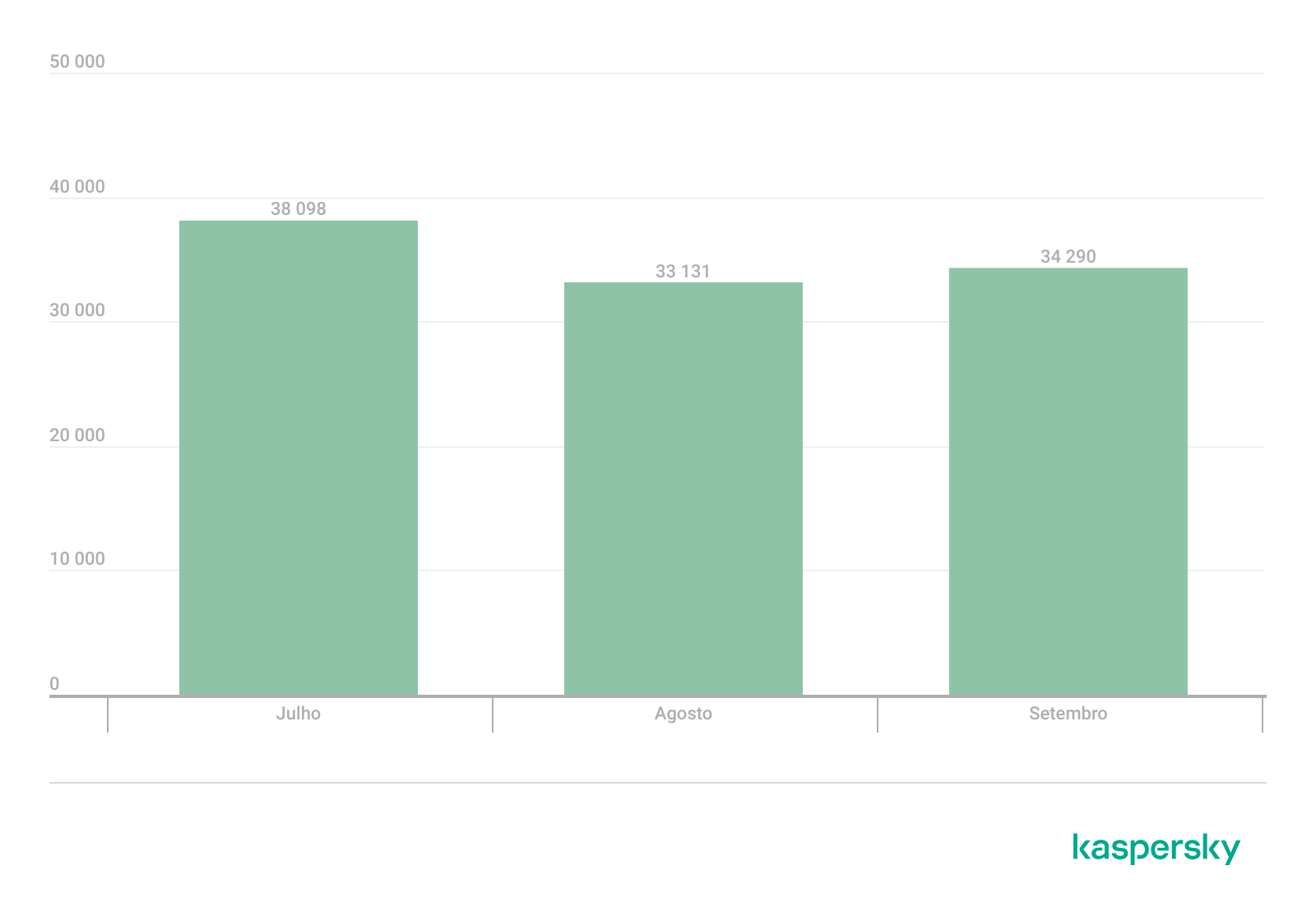 Durante o período analisado, nossas soluções protegeram 84.903 usuários únicos contra ransomware. A maior atividade de software extorsionador foi registrada em julho, enquanto agosto foi o mês mais tranquilo.