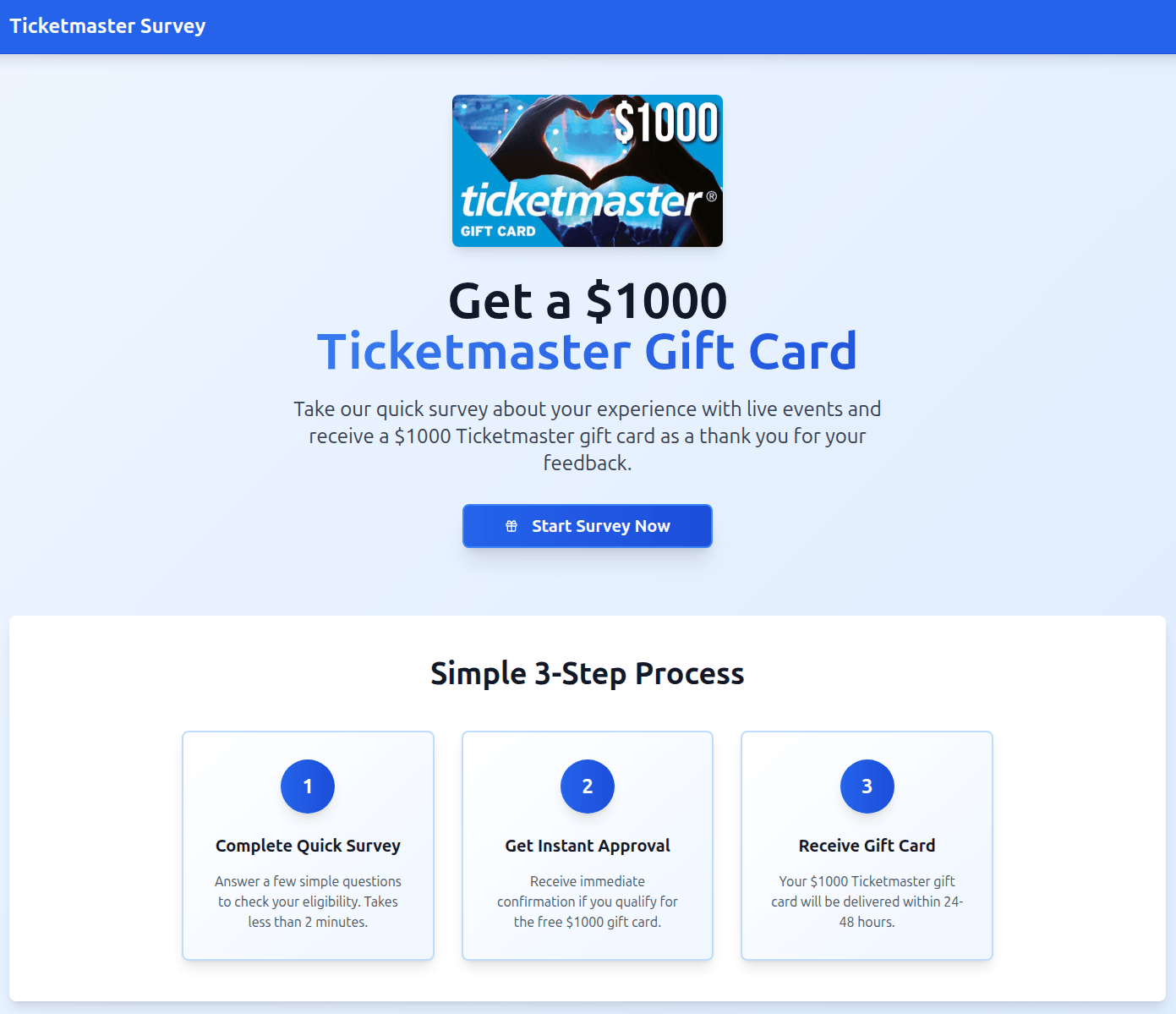 Em outro caso, ofereciam aos usuários a possibilidade de participar de uma pesquisa em troca de um vale-presente de 1.000 dólares. No entanto, como é comum neste tipo de golpe, a vítima devia pagar uma pequena taxa ou as despesas de correio para obter o vale. Após receber o dinheiro, os cibercriminosos desapareciam e o site ficava inacessível.