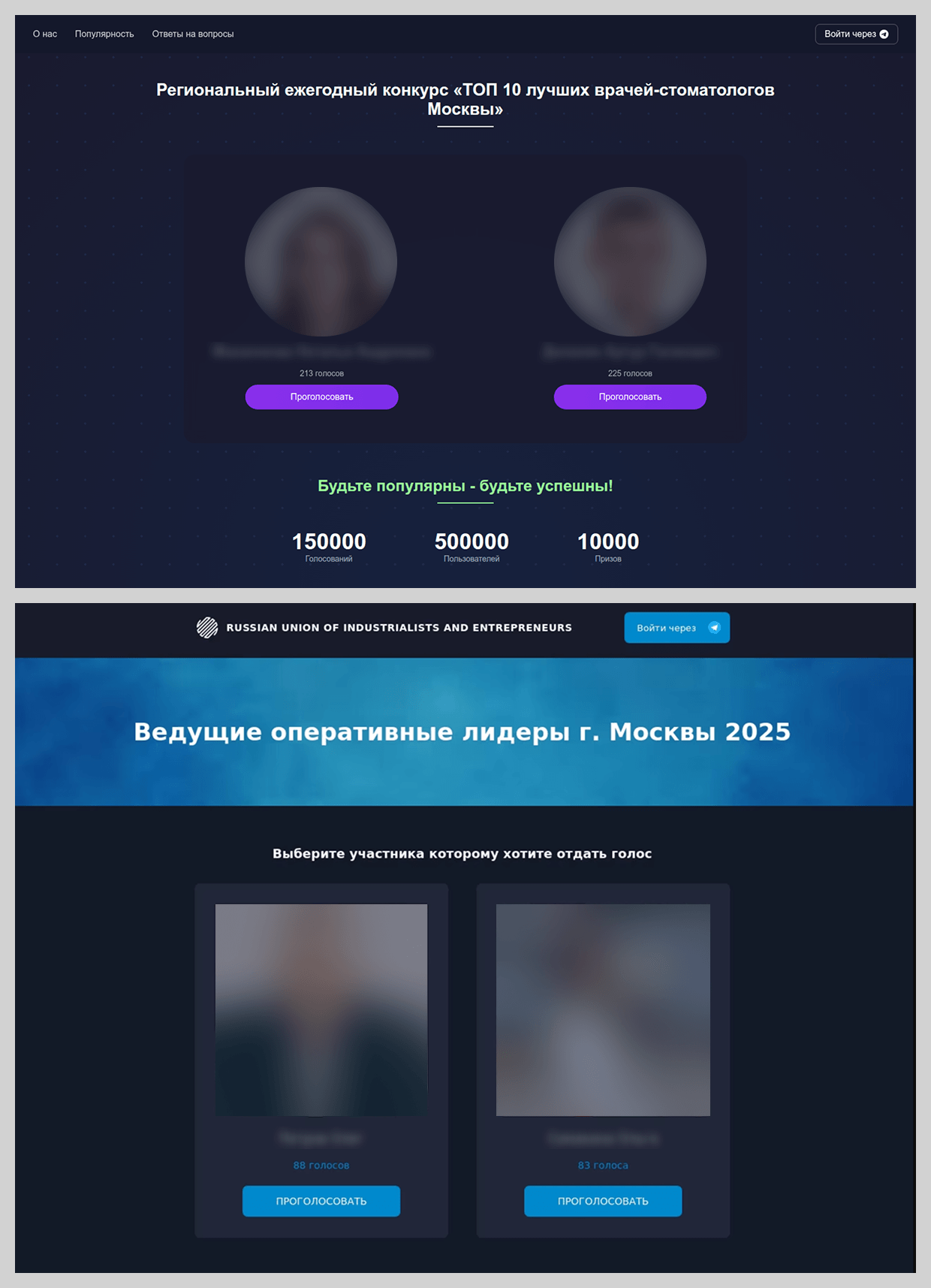 Em 2025, no já conhecido esquema de distribuição de links de phishing via Telegram, começaram a aparecer novos roteiros. Por exemplo, vimos propostas para eleger o melhor dentista ou melhor líder operacional da cidade.