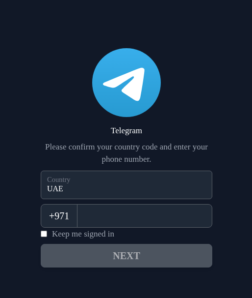 Para completar o registro requeriam um código que, na realidade, era um código de autorização do Telegram.