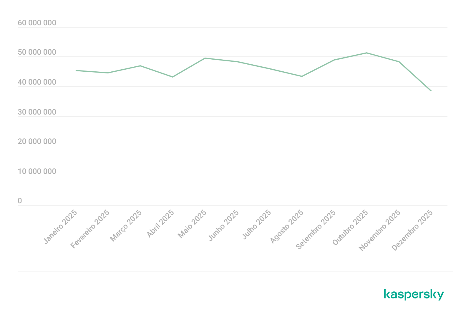 Em 2025, as soluções da Kaspersky bloquearam 144.722.674 anexos maliciosos em e-mail, número que supera em 19 milhões as detecções registradas em 2024. Os períodos de menor incidência foram registrados nos extremos do ano (janeiro-fevereiro e novembro-dezembro), com uma baixa observada durante agosto e setembro. Os picos por número de detecções do antivírus de e-mail se deram em junho, julho e novembro.