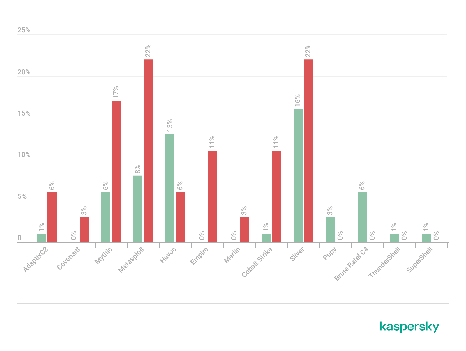 A figura a seguir apresenta a frequência de casos documentados de uso de frameworks de C2 em ataques lançados no terceiro trimestre de 2025, conforme fontes abertas.